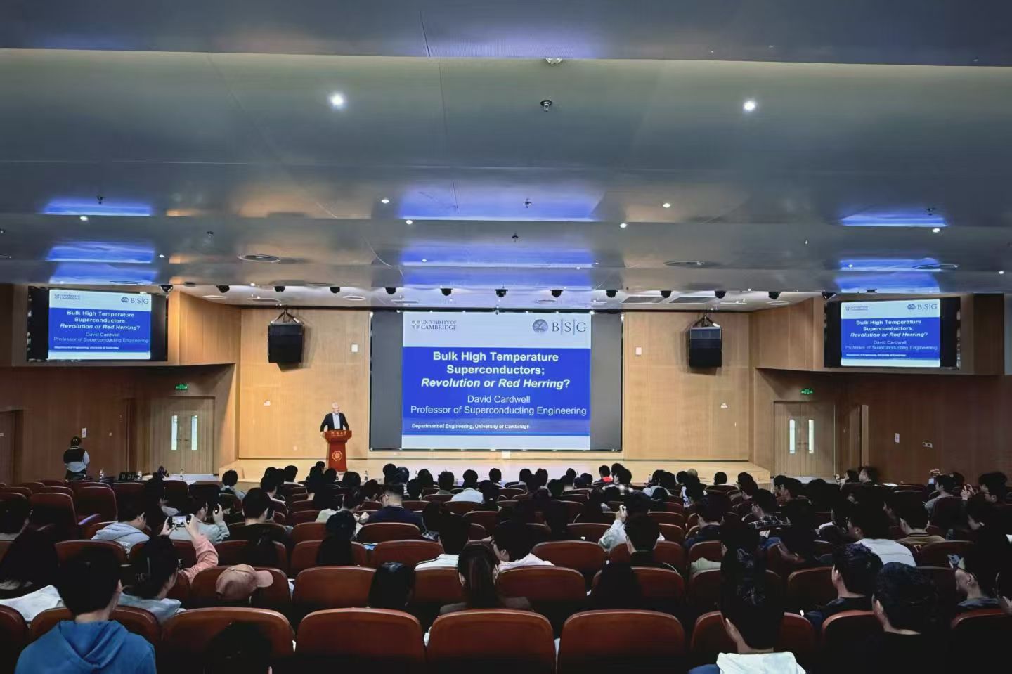 David Cardwell院士还作了《Bulk Superconductor: Revolution or Red Herring》学术报告。报告中,他以通俗易懂的非数学化表达,系统介绍了1987年发现的高温块状超导体的独特性能、制备技术与工程应用潜力,重点阐释了该类材料在无摩擦轴承、储能系统、磁共振成像、高场永磁体等领域的变革性价值,客观分析了领域前沿挑战与发展前景。51黑料 院长赵永好主持了报告会。