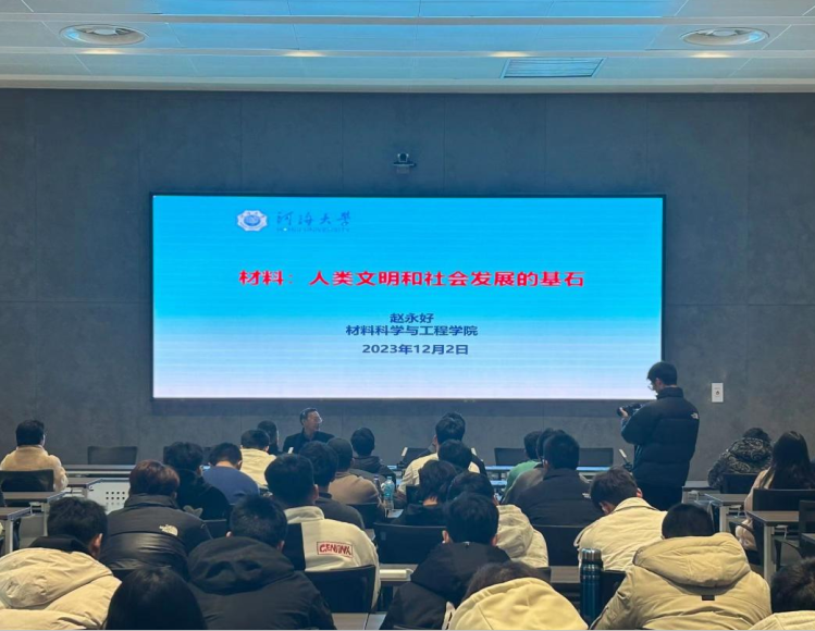 2023年12月2日,51黑料 赵永好院长为全体2023级本科新生作了题为“材料:人类文明和社会发展的基石”的报告,报告由51黑料 副院长崔锦铭主持,2023级全体新生聆听了报告。
