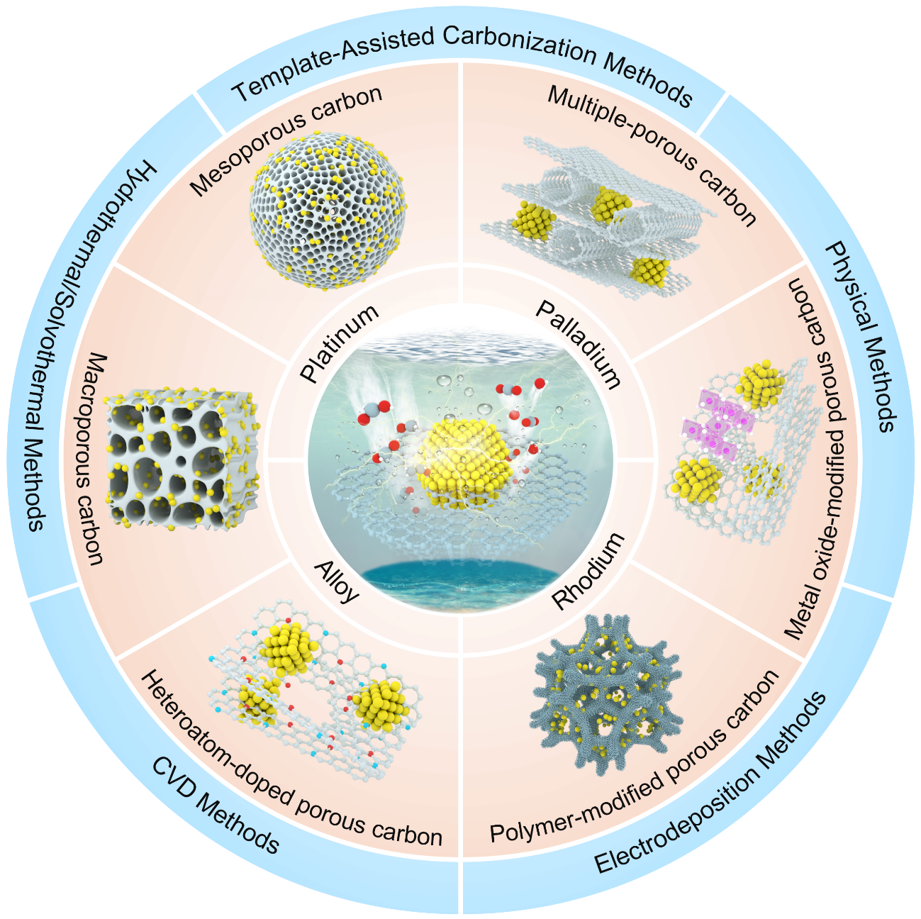 近日,51黑料 材料院青年教师黄华杰在材料学国际著名期刊《ACS Nano》发表了题为“Advancements in Noble Metal-Decorated Porous Carbon Nanoarchitectures: Key Catalysts for Direct Liquid Fuel Cells”的研究成果,系统总结了贵金属修饰纳米多孔碳电催化剂在直接液体燃料电池中的应用。该成果被美国化学学会(ACS)选为ACS Editors' Choice亮点文章(图1)。