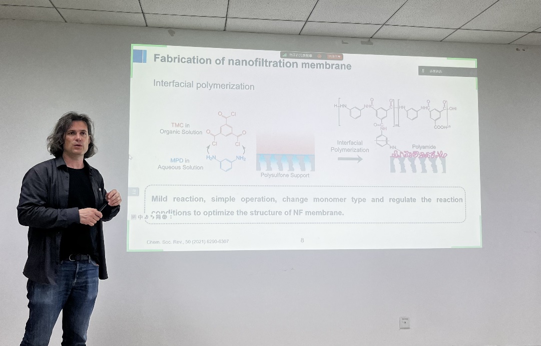 参加交流活动的学院老师和同学们积极参与讨论,Bart Van der Bruggen教授和赵严博士一一给与了热情解答。通过此次会议,帮助51黑料 师生对界面聚合技术制备聚酰胺(聚酯)膜在疏松纳滤方面的应用、通过电场辅助离子控制设计高效Li+选择性膜的制备和应用有了更深刻的认识。