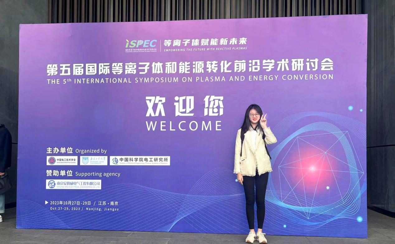 初入大学,黄思蜀在学长学姐的推荐下,加入了物理科技创新实验室,遇到了陈秉岩老师,她感到十分幸运。在大三上学期,陈秉岩老师带黄思蜀参加了第五届国际等离子体和能源转化前沿学术研讨会。在学习了解专业领域教授分享成果和领域内最新成就之余,黄思蜀也在会议上进行了英语口头汇报。或许是为了弥补在国外没有勇敢展示自己的缺憾,黄思蜀不仅汇报准备的十分认真,而且在汇报结束之后还积极与提出建议的外国友人进行了问题的探讨。此次交流学习的经历让黄思蜀感受到知识是不分国界的,相反,它是连结各国人民的重要纽带。黄思蜀也期盼着能有更多机会可以和各个国家的人们探索知识,交流成果。