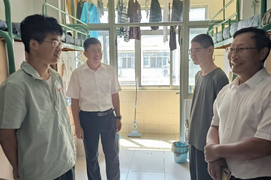 学院党委书记陈伟刚,院长赵永好,副院长宋丹,副书记、副院长辛绍权与新生辅导员温泽来到宿舍看望新生,与新同学和家长们亲切交流,询问他们对材料院的第一印象和学习生活感受。
