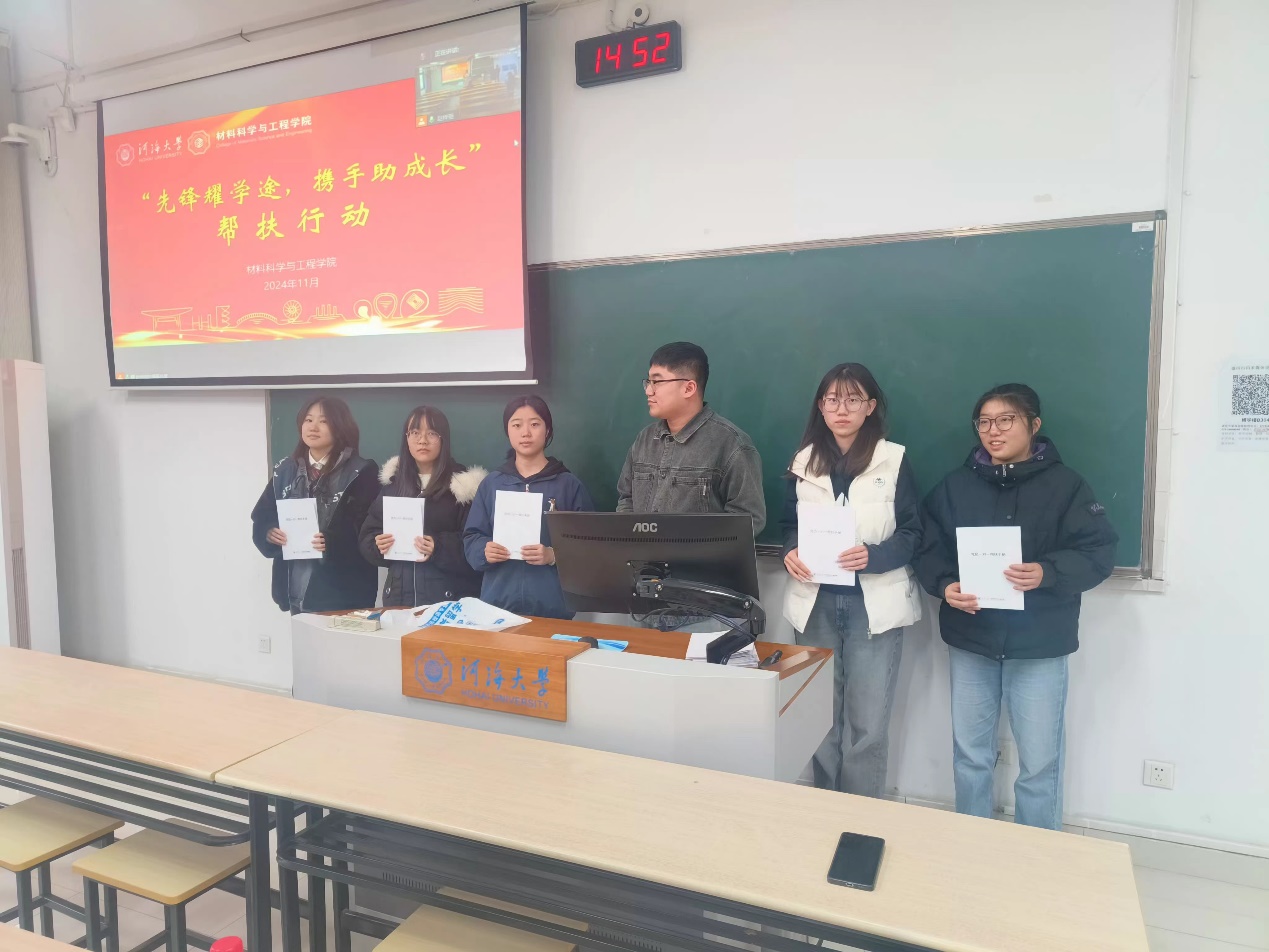 在新时代高校教育深化改革与全面加强党建工作的大背景下,学风建设成为高校人才培养质量提升的关键环节。为进一步落实立德树人根本任务,充分发挥党组织的战斗堡垒作用和党员的先锋模范作用,以党建引领带动学院整体学风的优化与提升,切实解决部分学生在学业上存在的困难与困惑,助力学生全面成长成才,材料院积极响应号召,精心策划并组织开展了 “先锋耀学途,携手助成长” 党员一对一帮扶行动。1118日,该行动的结对仪式在江宁校区与常州校区同步举行。此次活动旨在充分发挥党员的先锋模范作用,助力学生在学业与个人成长道路上取得更大进步。学院党委副书记、副院长辛绍权、组织员汤燕、团委书记蒋旦悦和助管辅导员郭振华出席本次结对仪式,活动相关党员和同学参与此次活动。