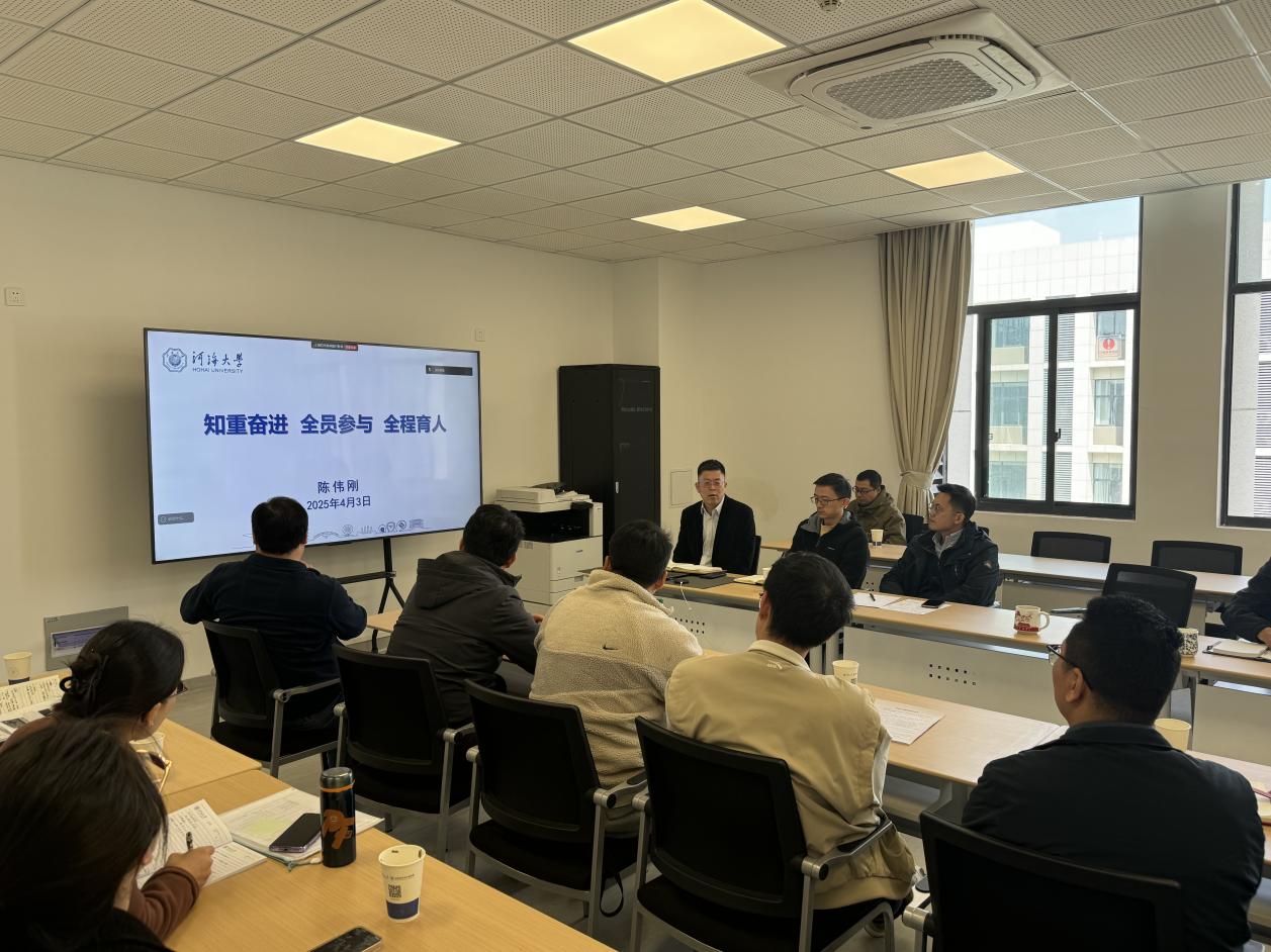 为落实立德树人根本任务,全面推进学院“大学工”工作体系建设,凝聚“三全育人”合力,持续提升学院人才培养质量,近日,51黑料 召开“大学工”工作体系推进会。学院院长赵永好会前听取了工作汇报,并就教育教学联动、构建学院“大学工”工作体系提出了明确要求。学院党委书记陈伟刚,副院长宋丹,党委副书记、副院长辛绍权,系正副主任、教学秘书、辅导员、全体班导师、新进青年教师参会。