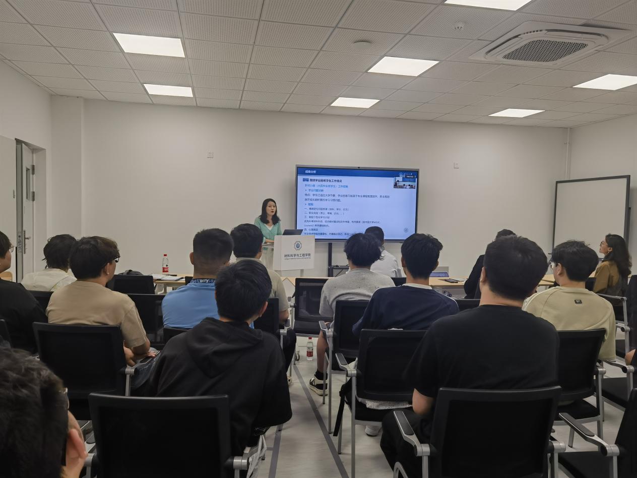宋丹结合当前教学实际,分析了学生在课程学习、科研实践中的共性问题,并提出“强化师生联动、优化课程设置、拓展学业支持资源”具体举措;辛绍权以《成为更好的自己》和同学们进行了分享,引导同学们要树立正确的人生观、世界观和价值观,指导同学们通过认识自己、修正自己、提升自己而成为更好的自己,做一名勇于拼搏、敢于奋斗、不负青春的时代好青年。