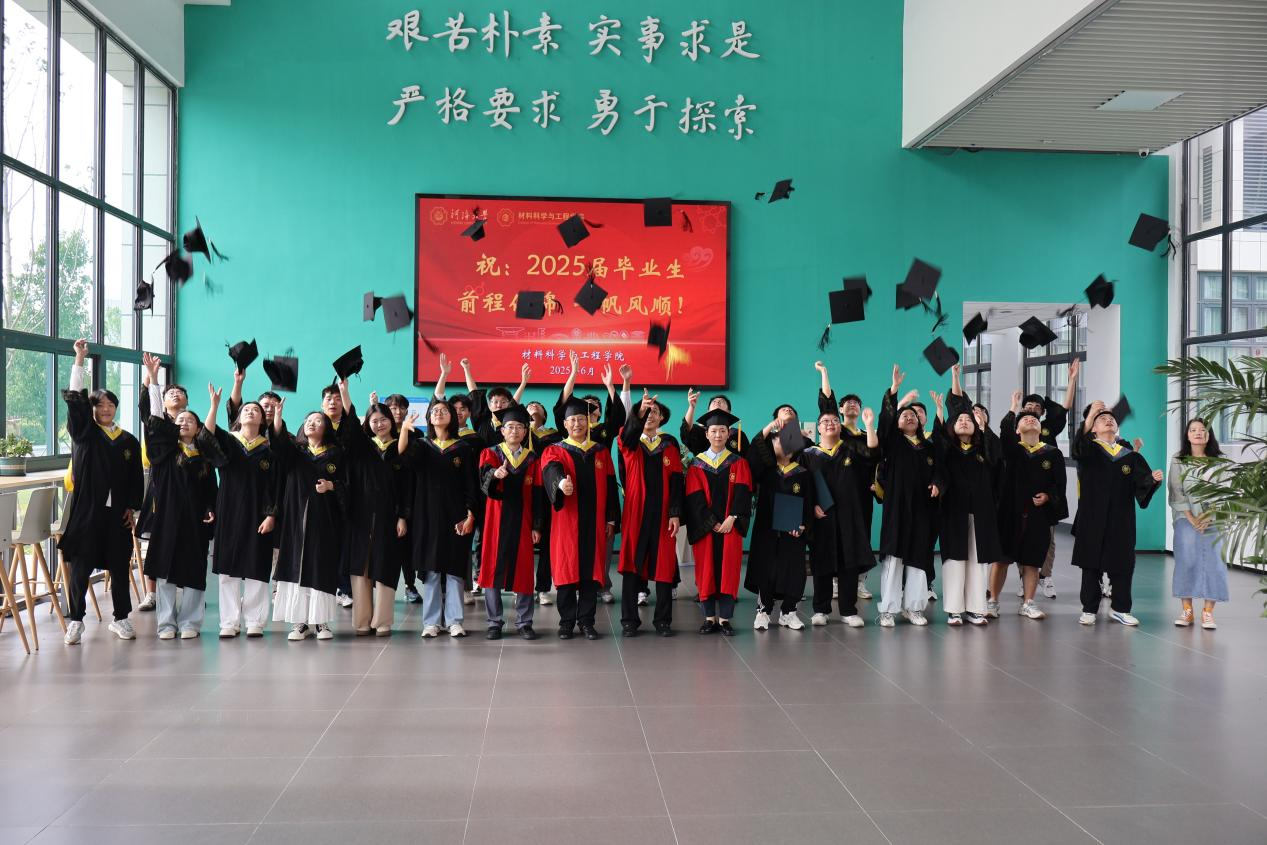 典礼在激昂奋进的校歌声中圆满落幕。毕业生们与师长、同窗、家人纷纷在会场内外合影留念,互道珍重,依依惜别。带着学院的殷切嘱托与美好祝福,2025届材料学子们将扬帆起航,奔赴祖国各地,在全面建设社会主义现代化国家的火热实践中贡献材料智慧与青春力量!