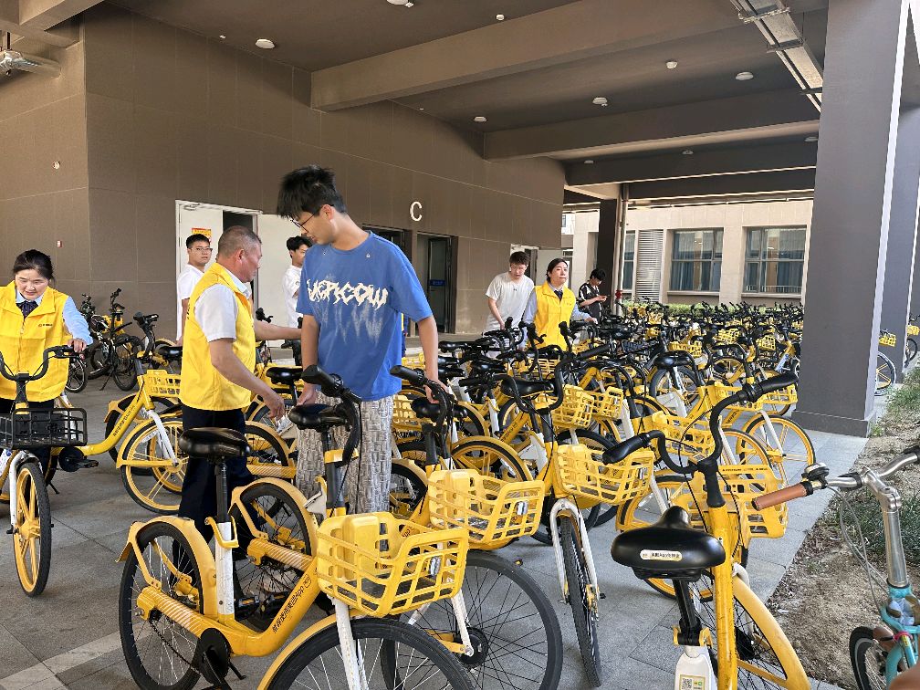 活动当天,9名志愿者准时抵达图书馆南门,与负责人汇合。在与丹田物业工作人员深入沟通并完成岗前培训后,大家迅速进入工作状态,奔赴各自岗位。志愿者们与物业人员携手并肩,有序开展校园共享单车规范摆放工作,仔细清理车筐杂物,弯腰捡拾散落在校园角落的白色垃圾。他们忙碌的身影穿梭在校园的道路旁、树荫下,成为一道温暖而亮丽的风景线。