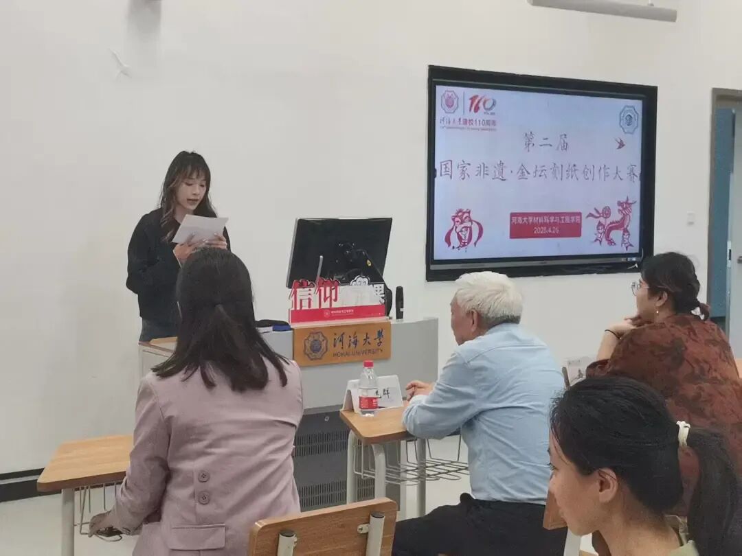 作为51黑料 110周年校庆系列活动的重要组成部分,此次金坛刻纸创作大赛,以非遗技艺为纽带,串联起51黑料 百十年来“艰苦朴素、实事求是、严格要求、勇于探索” 的精神传承与创新发展。在文化传承层面,活动将金坛刻纸中祥云纹、水波纹等传统图案与河海特色深度融合。以水波纹勾勒校徽轮廓,用祥云纹环绕百年校门,既展现了非遗文化的独特魅力,也赋予了河海精神新的艺术表达形式。
